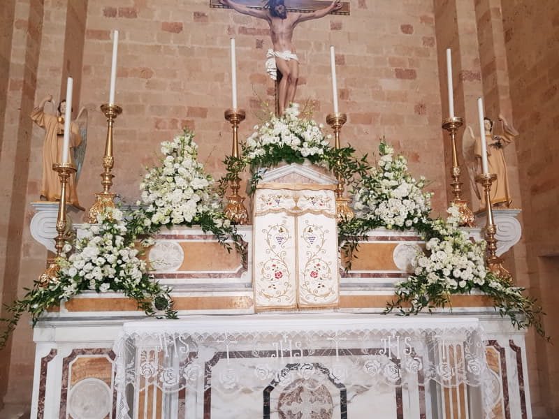 Le nostre creazioni floreali per i riti religiosi rispettano la sacralità del momento, accompagnando l'atmosfera mistica di chiese secolari o la tranquillità spirituale dei monasteri nascosti tra gli ulivi. Ogni addobbo è studiato per completare l'ambiente, creando un dialogo tra l'antico e il nuovo, tra l'eternità del rito e l'effimero splendore dei fiori